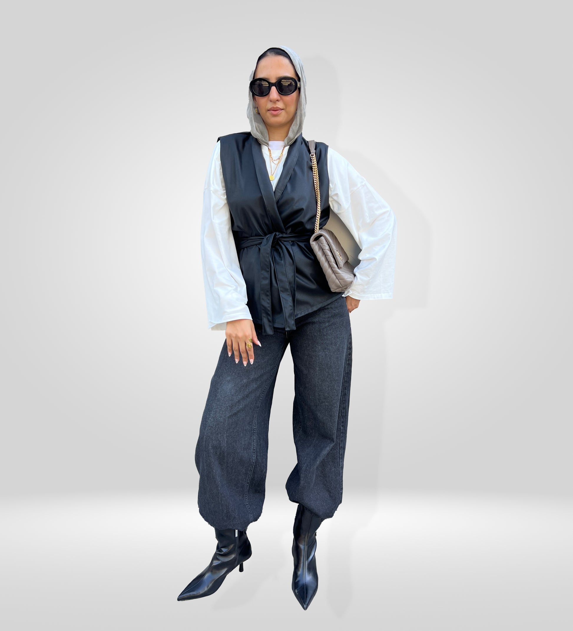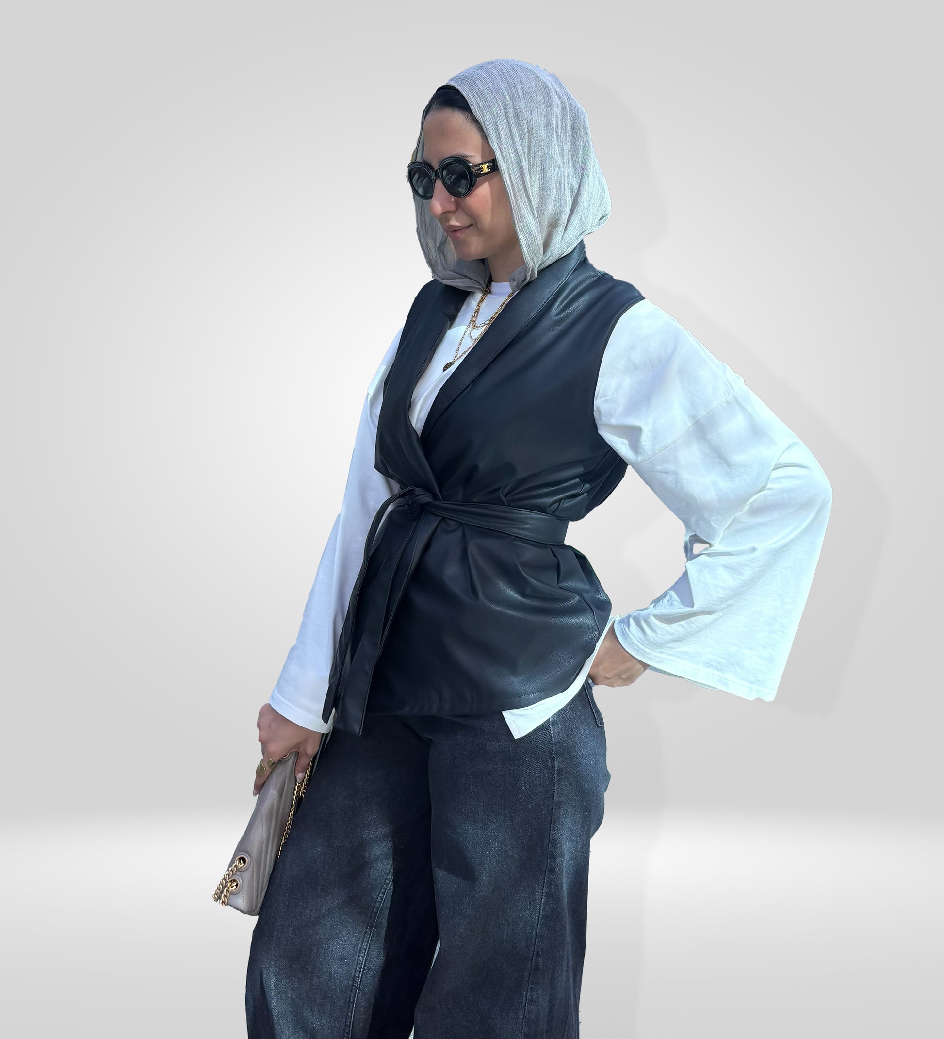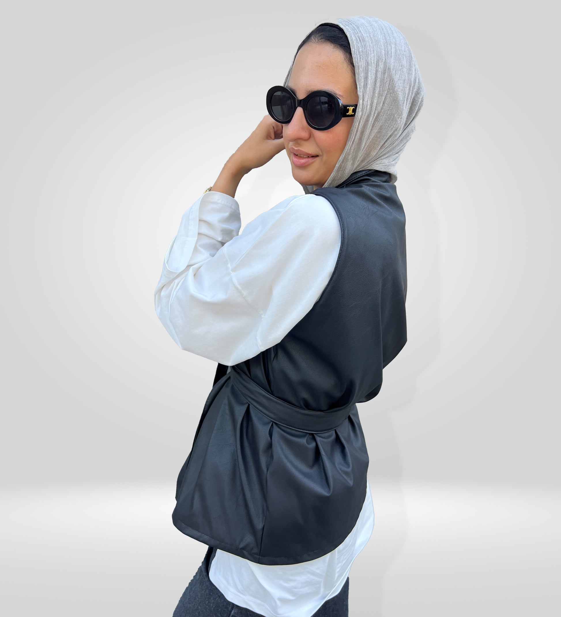 The Matte Black Leather Vest. Designed for comfort and style, this essential features a smooth matte finish and subtle stretch. Structured yet flexible, it provides an instantly elevated look.