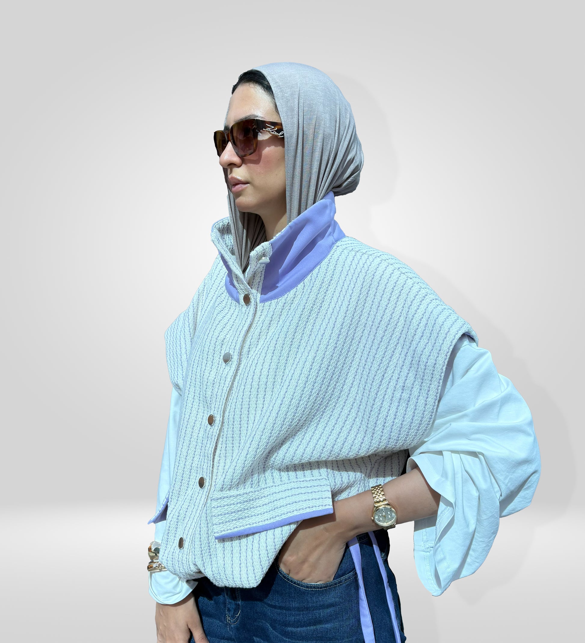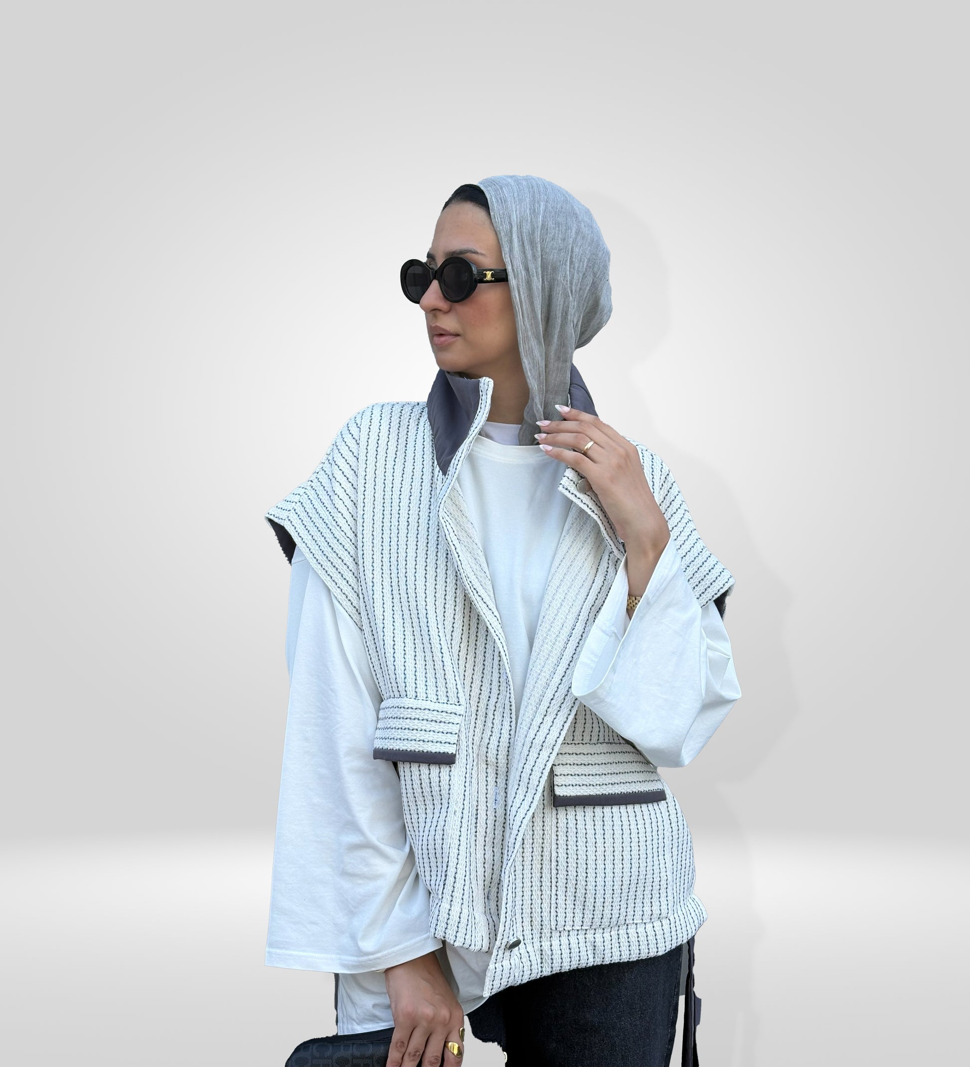 A cozy yet breathable vest crafted from wool-cotton blend, featuring a subtle textured finish and clean outlined edges. Designed for layering, this piece adds warmth and style to any outfit with minimal effort.